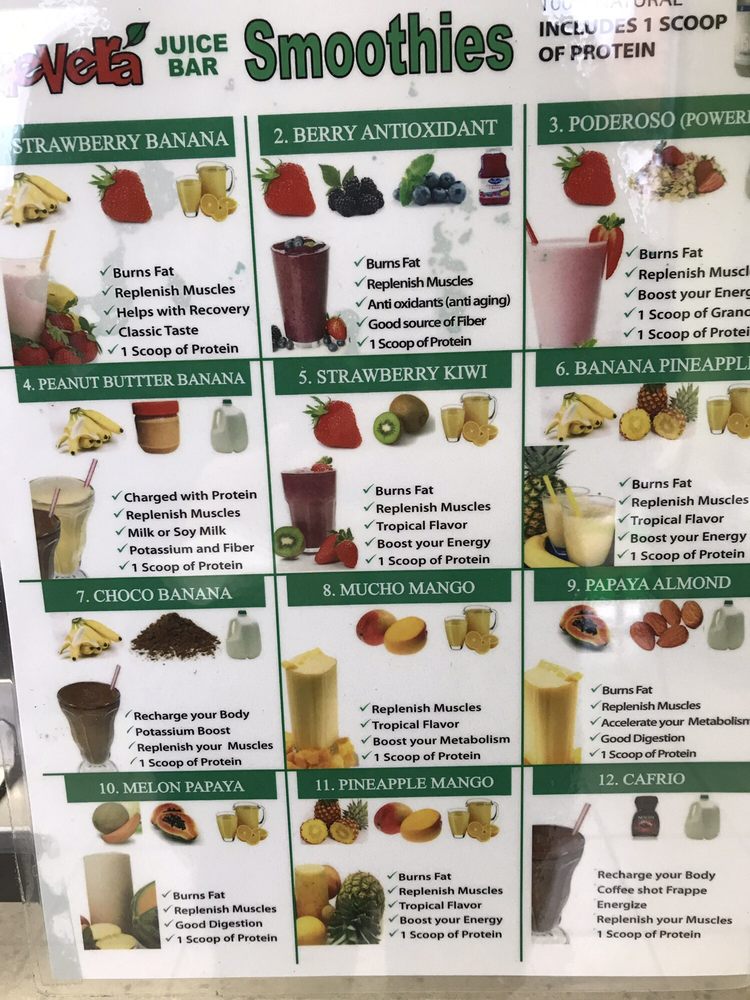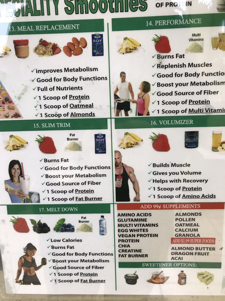 Melon, papaya, protein, ice, orange juice, choice of sweetener.
