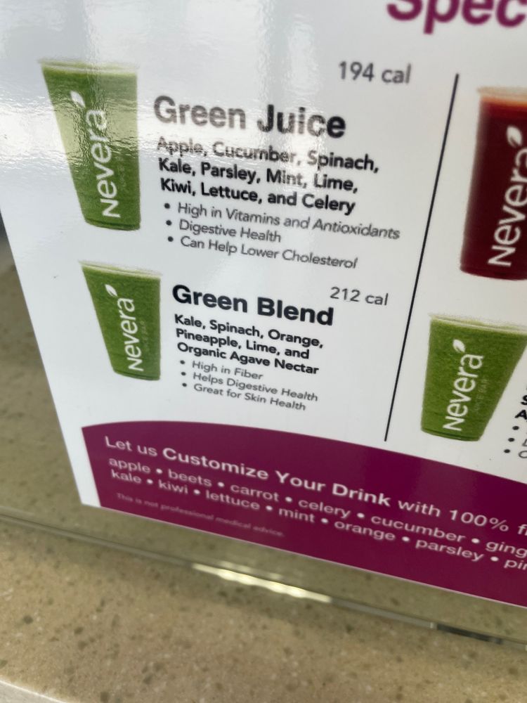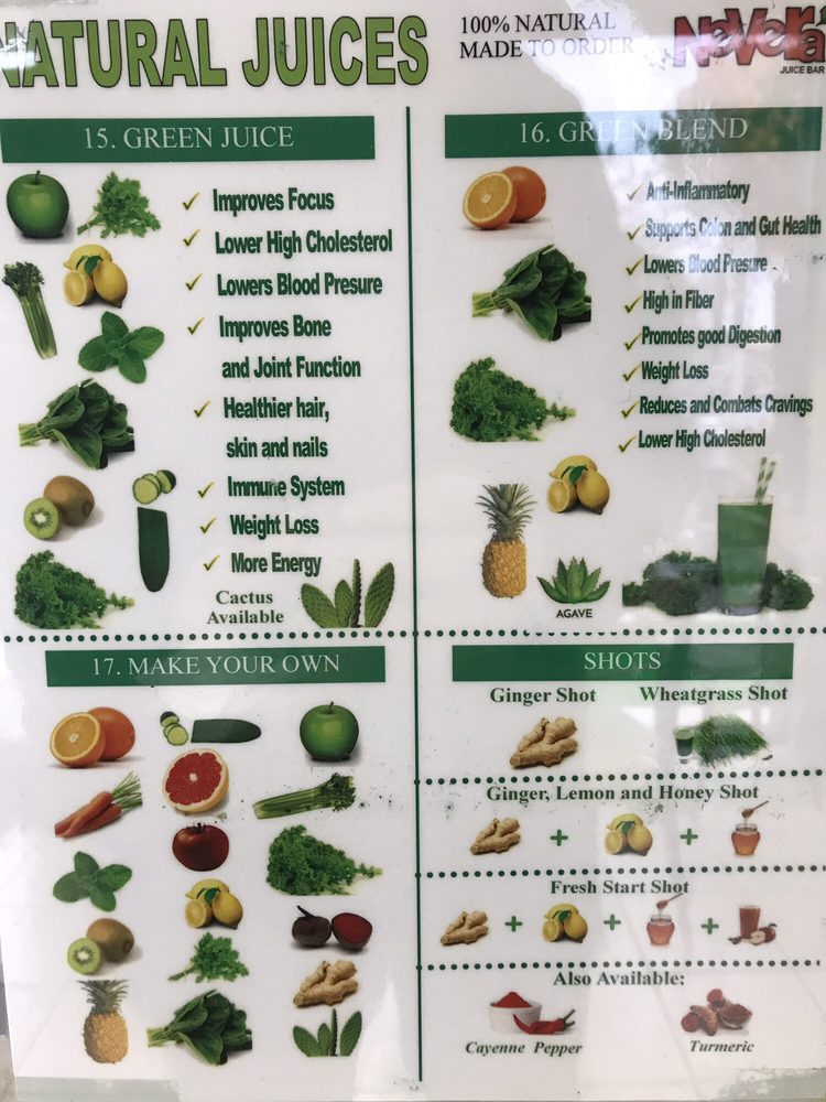 Apple, celery, spinach, kale, parsley, cucumber, mint, lime, lettuce.