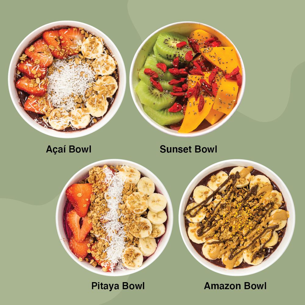 Organic Sambazon acai, strawberry, banana, coconut, organic hemp granola, honey.